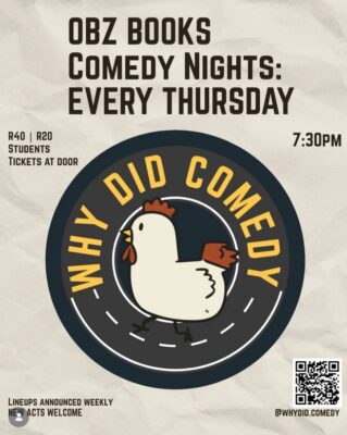 OBZ Books Comedy Night by Why Did Comedy IG text : A new weekly stand-up comedy night is coming to Obs. Every Thursday. Line-ups announced weekly. Follow for updates ———————- Qicket text : OBZ Books Comedy Night by Why Did Comedy Chapter Two: Here we go again We’re back with the second edition of our […]