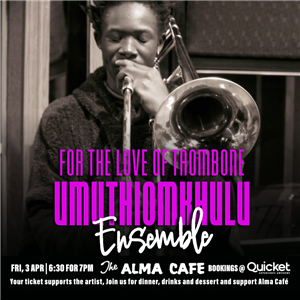 Join us for an evening of live music featuring the Umuthiomkhulu Ensemble. The event starts at 18h30 for 19h00 (kitchen orders close at 19h00). Live music begins after dinner service is completed.